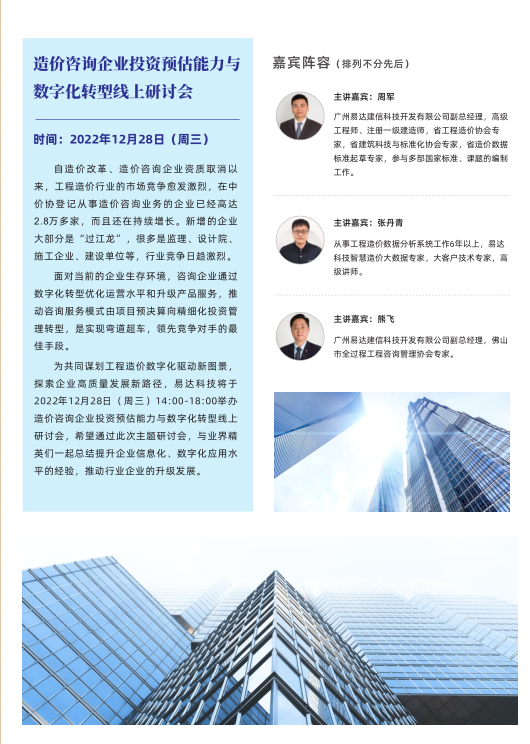 造价咨询企业投资预估能力与数字化转型线上研讨会邀请函