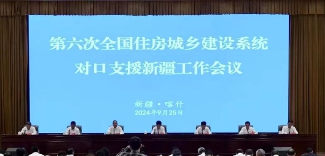 9月25日,第六次全国住房城乡建设系统对口支援新疆工作会议在喀什召开。住房城乡建设部党组成员、副部长、部支持新疆工作领导小组组长姜万荣,新疆维吾尔自治区人民政府副主席王刚,新疆生产建设兵团党委常委、副政委刘新建出席会议并讲话。会议强调,要以习近平新时代中国特色社会主义思想为指导,深入贯彻落实党的二十大和二十届二中、三中全会精神,全面落实第九次全国对口支援新疆工作会议部署,完整准确全面贯彻新时代党的治疆方略,奋力推动住房城乡建设系统对口援疆工作再上新台阶,为实现新疆社会稳定和长治久安,为以中国式现代化全面推进强国建设、民族复兴伟业做出新的更大贡献。