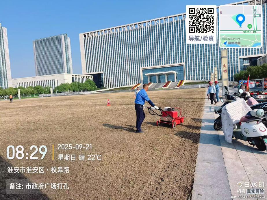 在作业方式上,本次播种积极引入现代化农机装备,大力推广机械化作业。无人机承担大面积绿地播种任务,实现高效率、均匀播撒;打孔机则同步进行土壤打孔松土作业,以增强土壤透气性与蓄水能力,为草籽萌发创造最佳条件。这种机械化组合拳,不仅大幅提升了作业精度和效率,也体现了园林养护的现代化水平。