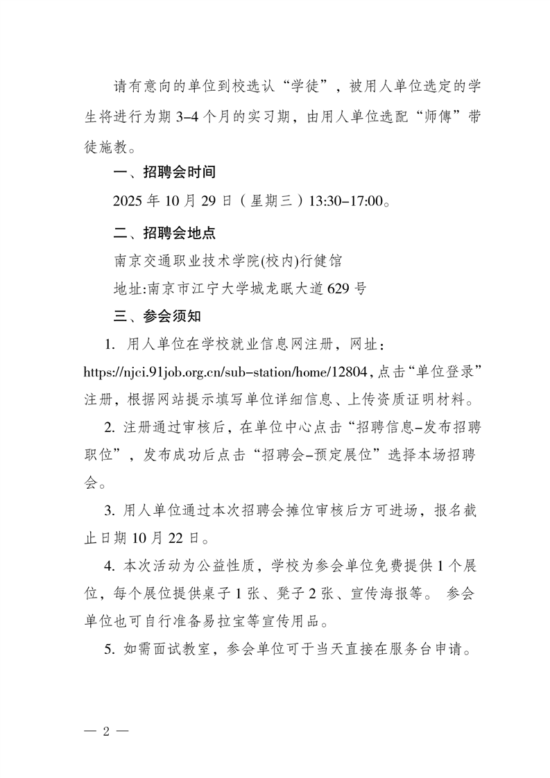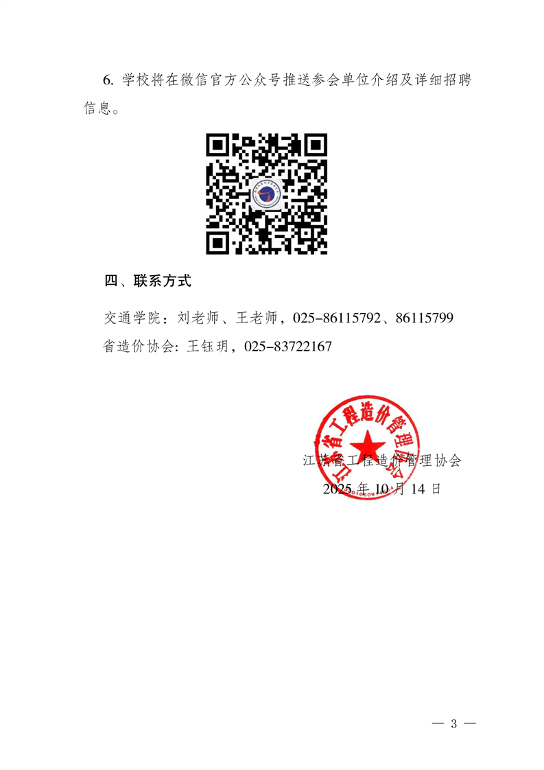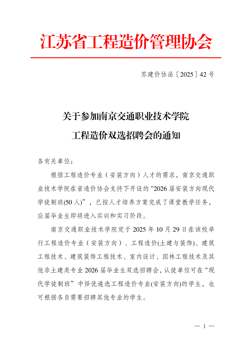 关于参加南京交通职业技术学院工程造价双选招聘会的通知