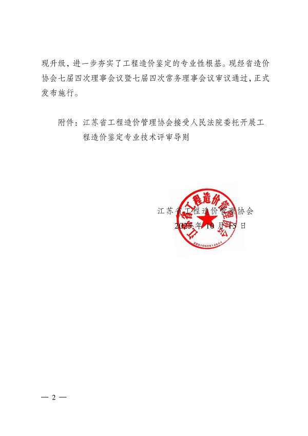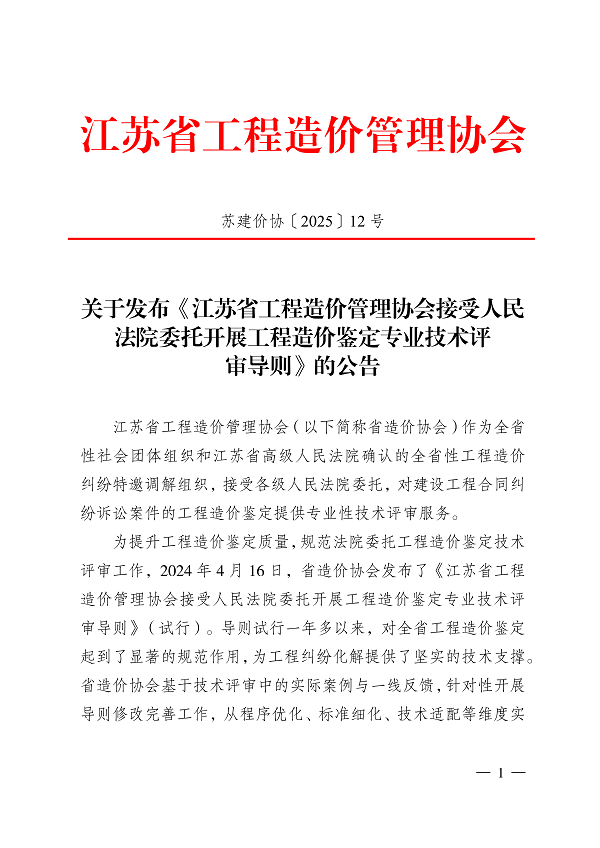 关于发布《江苏省工程造价管理协会接受人民法院委托开展工程造价鉴定专业技术评审导则》的公告