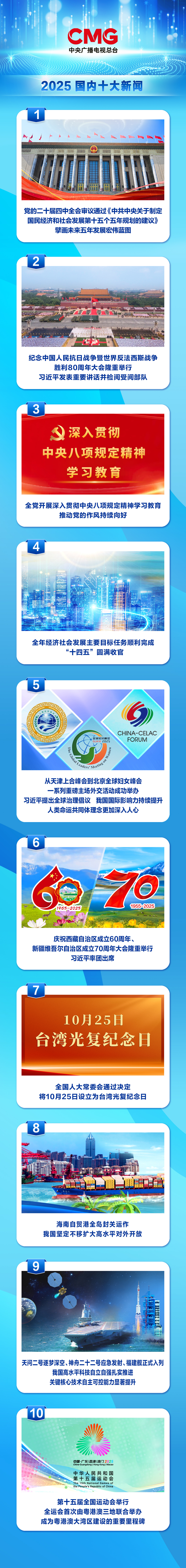 中央广播电视总台发布2025国内、国际十大新闻