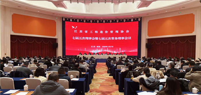 2026年1月27日,江苏省工程造价管理协会七届五次理事会议暨七届五次常务理事会议在南京顺利召开。省协会理事会理事、常务理事、监事共三百余人出席会议。江苏省建设工程造价管理总站站长林国峰、副站长钱鑫、省协会专家委员会主任王如三应邀出席了会议。会议由何平会长、吴虹鸥秘书长分别主持。