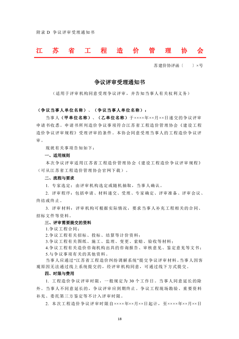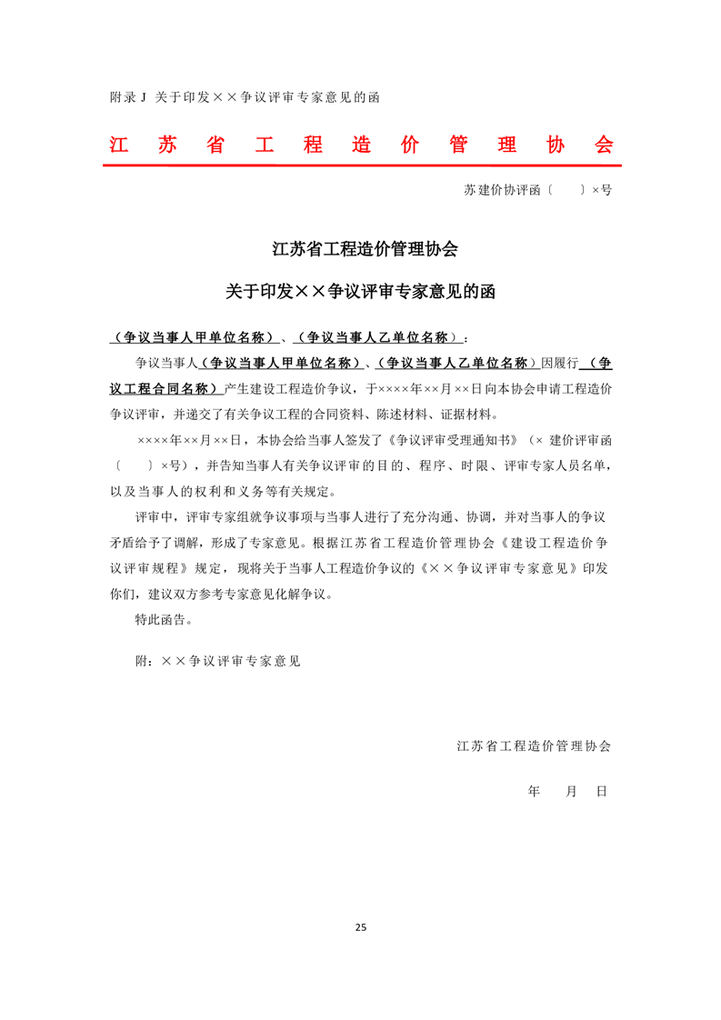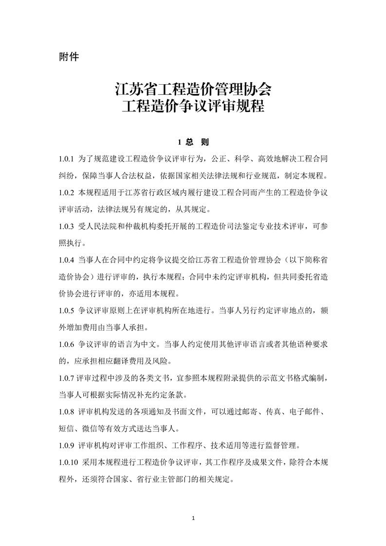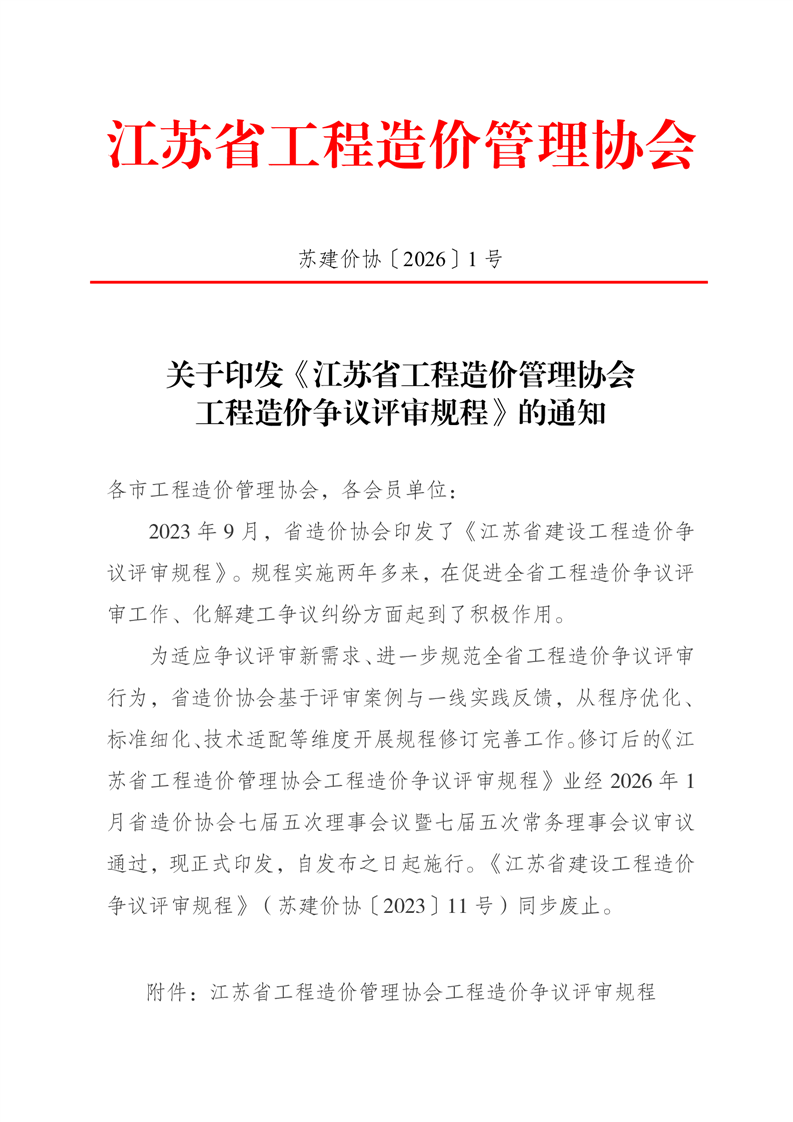 关于印发《江苏省工程造价管理协会工程造价争议评审规程》的通知