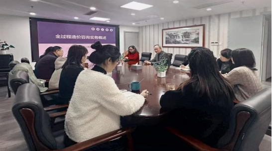 为提升协会工作人员对全过程造价咨询业务的系统认知与专业能力,2026年3月24日上午,江苏省工程造价管理协会组织开展“全过程造价咨询实务”专题业务培训。本次培训特邀江苏中衡工程顾问有限公司副总经理吴怡担任主讲,协会会长何平出席,并带领全体员工一同参加学习。