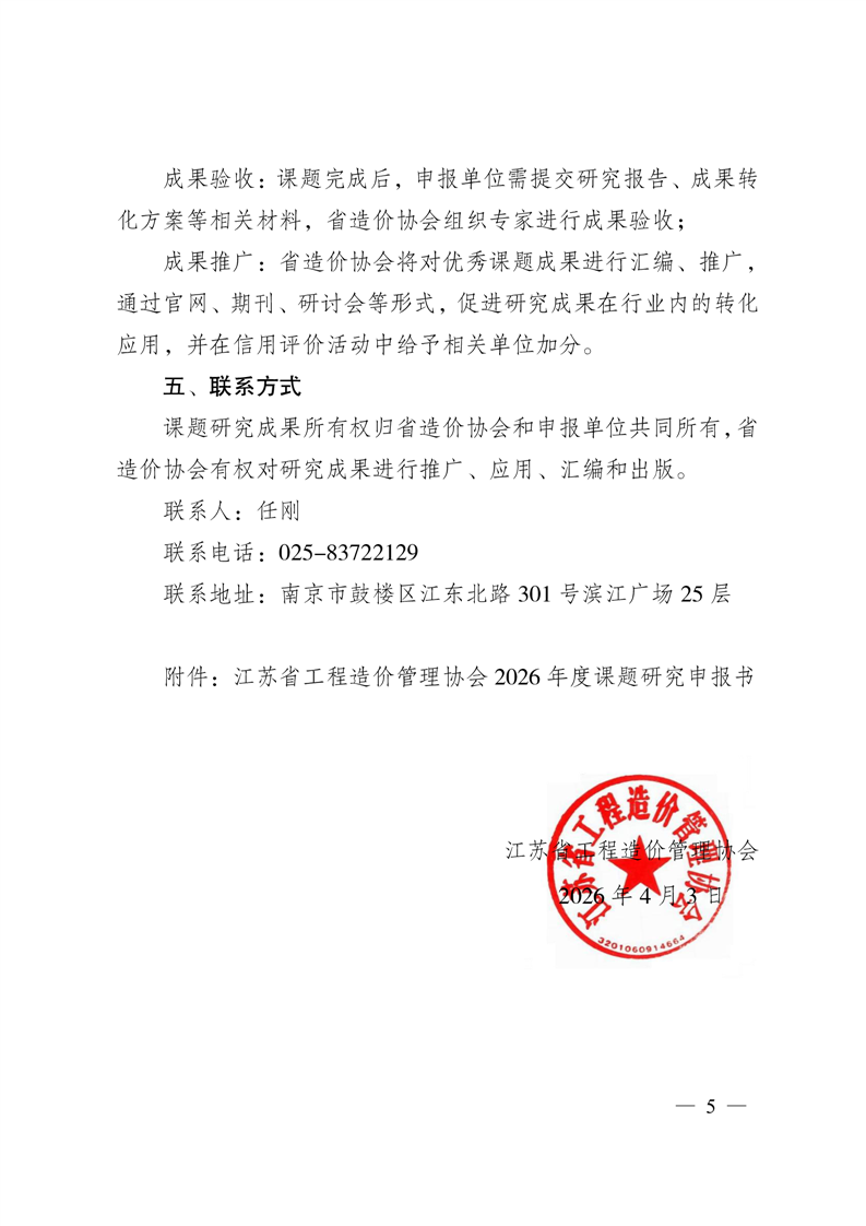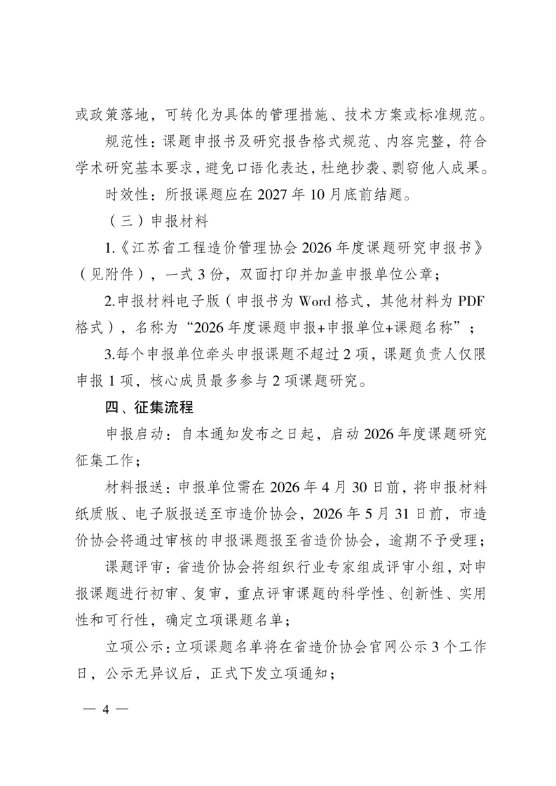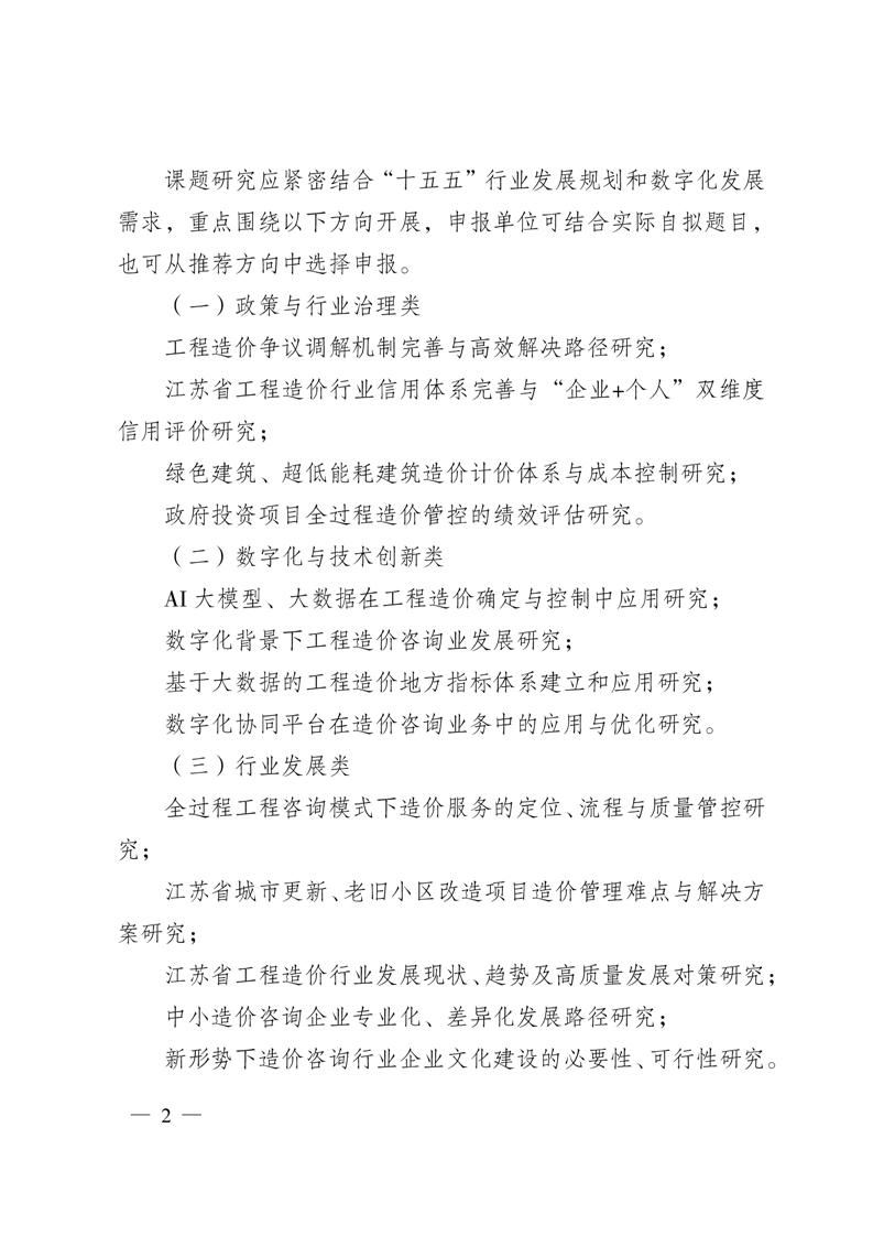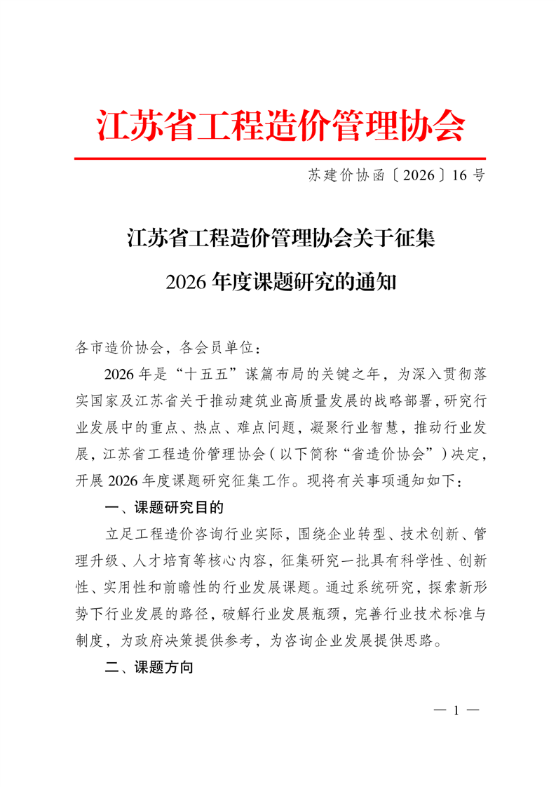 江苏省工程造价管理协会关于征集2026年度课题研究的通知